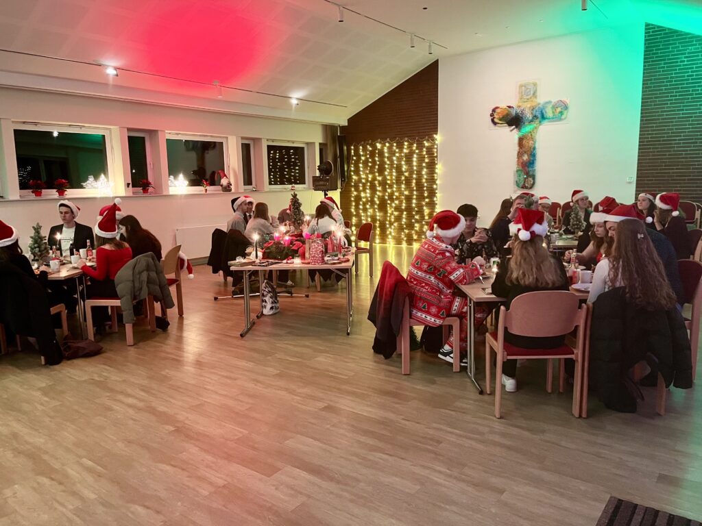 Das Jahr 2025 wurde gemeinsam bei unserer Weihnachtsfeier beendet. Ein tolles Programm führte durch den Abend. Mit einem wunderschönen Jahresrückblick mit vielen Fotos, Videos und Texten aus dem zurückliegendem Jahr konnten wir noch einmal auf viele Highlights, Aktionen und besondere Momente zurückblicken. Begleitet wurde der Abend weiterhin durch ein EvJ Table Quiz, süße Wichtelgeschenke, einer Fotobox und einem Special-Weihnachtsbuffet der ganze besonderen Art. Auch das traditionelle Danke-Weihnachtsgeschenk der Ev. Jugend durfte natürlich nicht fehlen. 🎁